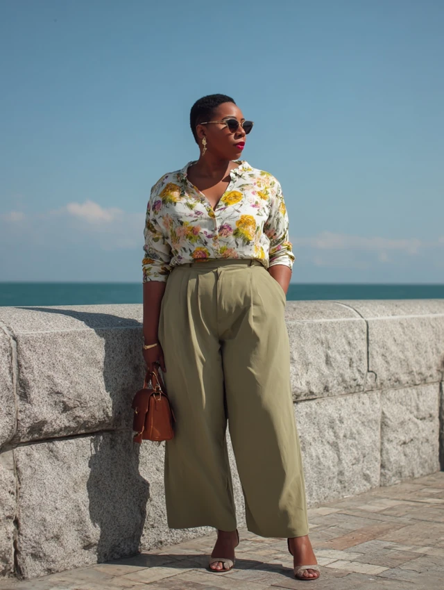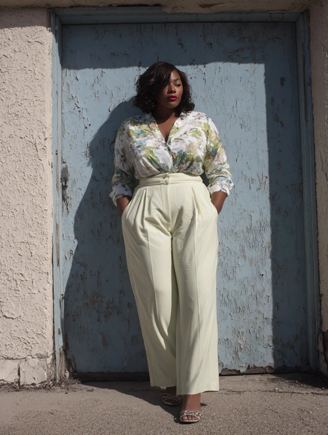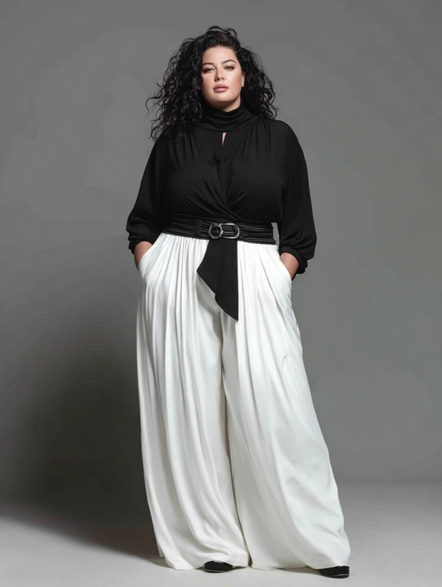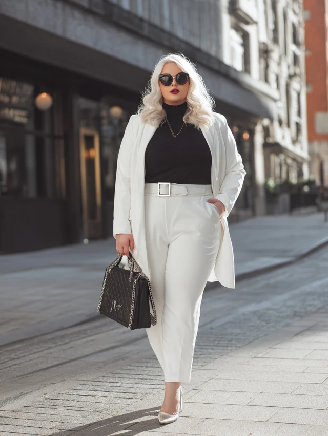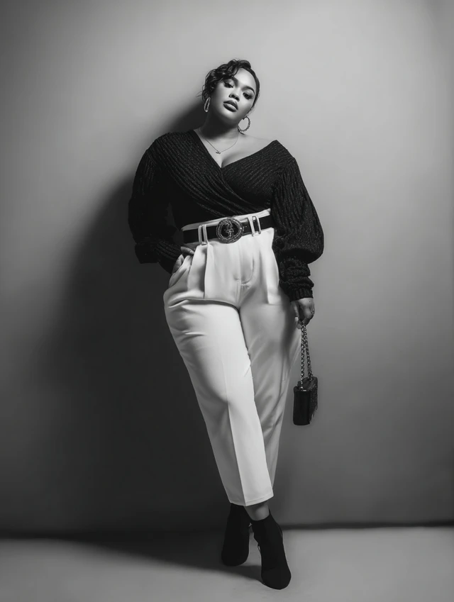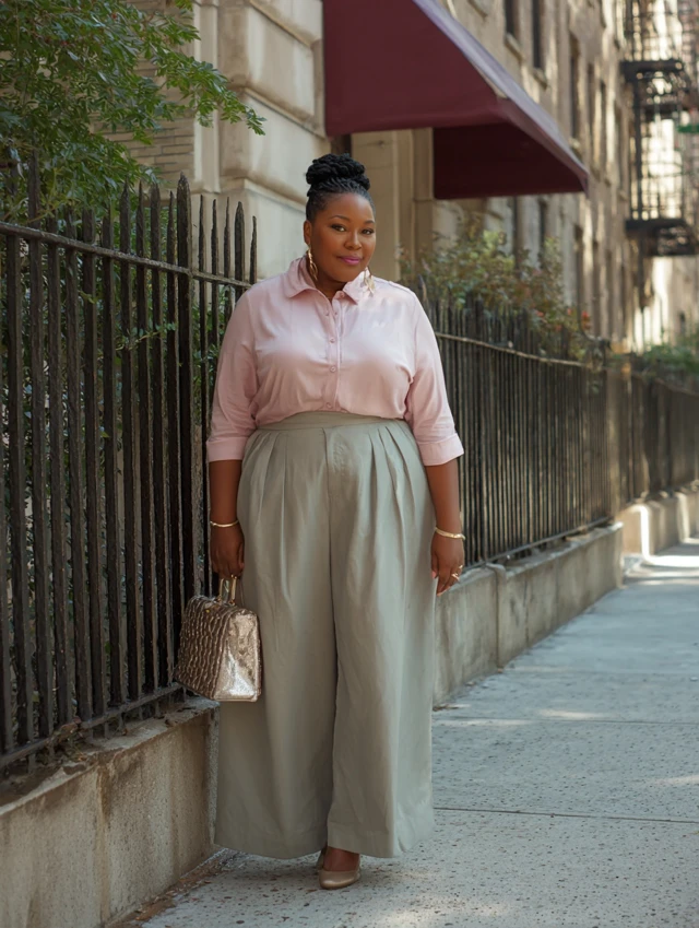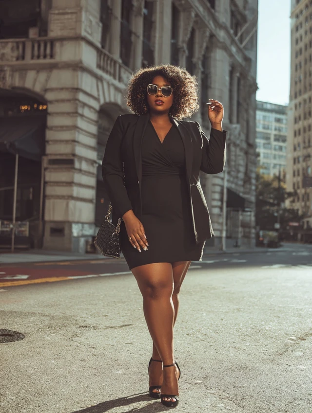 Confidence isn’t about erasing your shape—it’s about owning your presence. Whether you’re in wide-leg trousers, a wrap dress, or a blazer combo, the rule is simple: